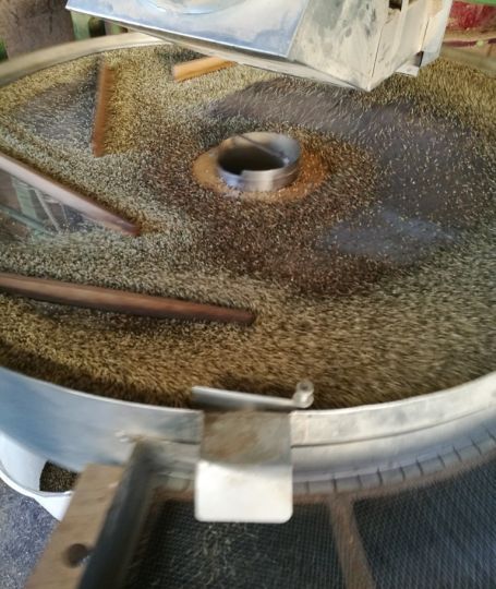 Storitev luščenja semena konoplje na profesionalnem lušilcu semena. Princip delovanja je relativno preprost: luščilec s tresljaji in krožnim gibanjem ločevalne posode ustvarja centrifugalno silo, ki zaradi različne mase dveh frakcij loči lupine in luščeno seme.