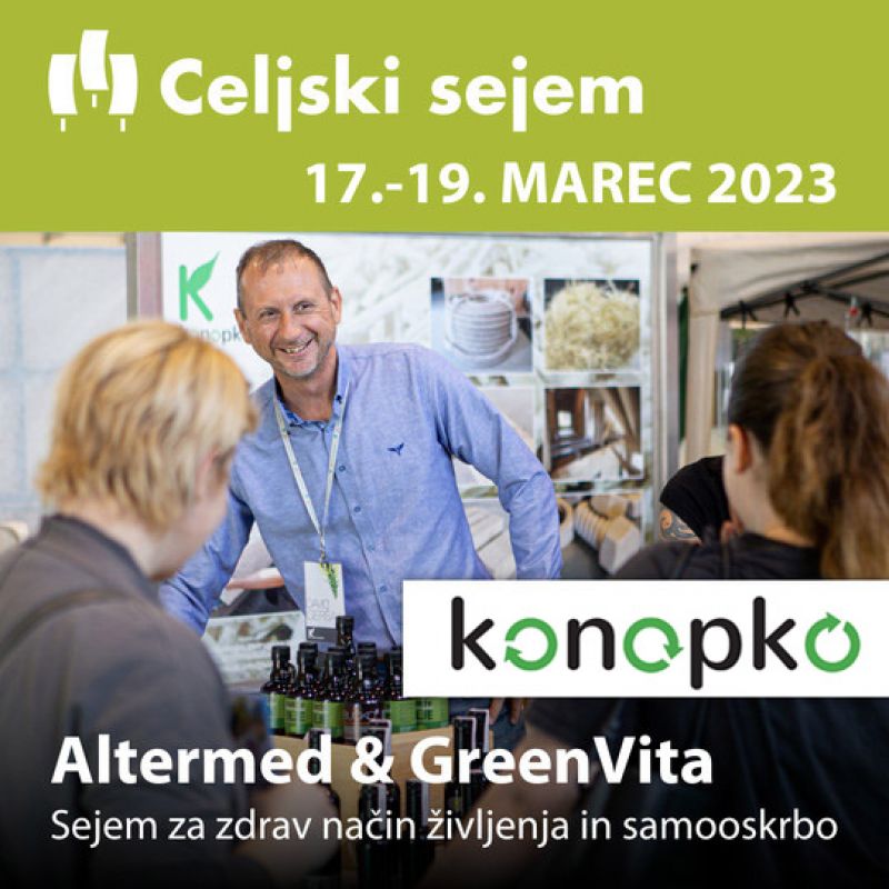 Pomlad počasi prihaja in z njo tudi sejemske aktivnosti. Zadruga Konopko se bo predstavila na dveh pomladnih dogodkih in sicer v Celju na sejmu Altermed & GreenVita (med 17. in 19. marcem) ter v Komendi na pomladnem sejmu (31.3. - 02.04.2023).