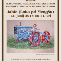 Društvo kmetijske tehnike Slovenije, sekcija ljubiteljev starodobne kmetijske tehnike v sodelavi s Kmetijskim inštitutom Slovenije organizira 13. junija 2015 ob 11. uri v Jablah pri Mengšu 18. slovensko srečanje ljubiteljev starodobne kmetijske tehnike.