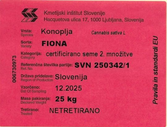 Seme konoplje za setev, slovenska sorta FIONA, 25kg