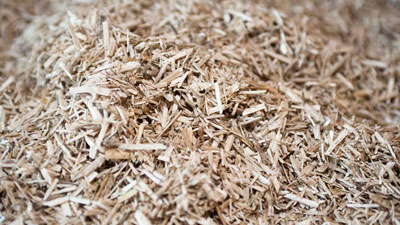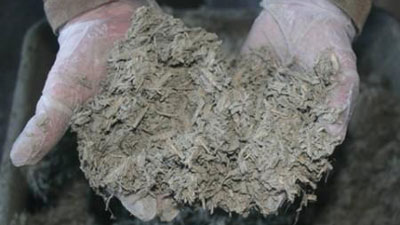 Konopljin beton pred vgradnjo (levo), sušen in sesekljan pezdir (desno)
