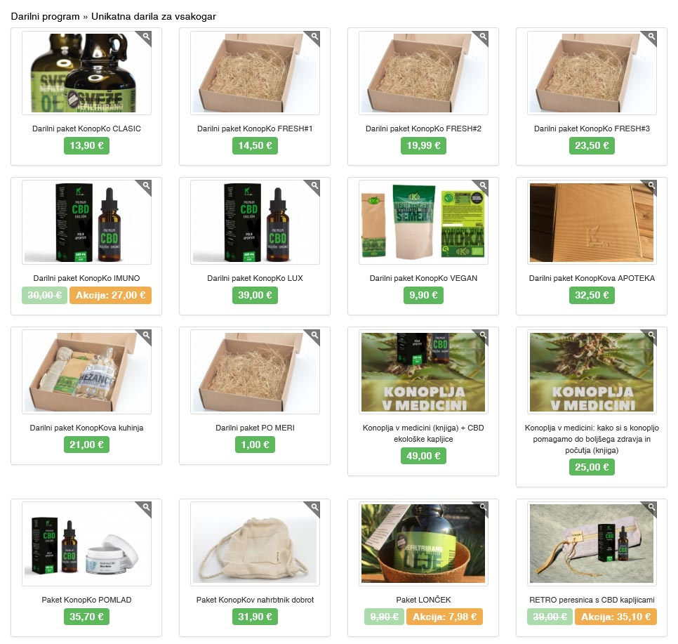 Izdelki iz konoplje, drobne pozornosti in darilni paketi