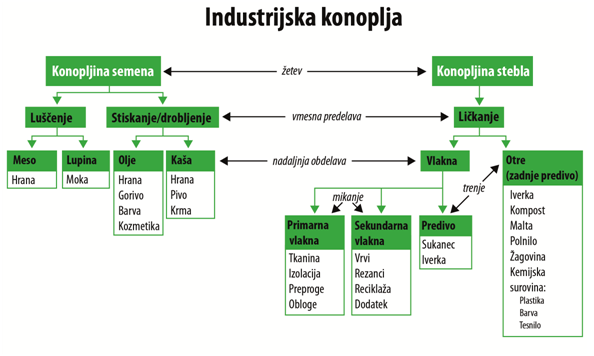 Industrijska konoplja je naraven, ekološki in popolnoma razgradljiv material. Ima najmočnejša in najtrpežnejša vlakna med vsemi rastlinami na planetu. Precej bolj kot danes so jo uporabljali že naši predniki, od prehrane, kozmetike, tekstila do gradnje. Konoplja je rastlina, iz katere znamo narediti že več kot 50.000 izdelkov. Konopljo lahko uporabimo tako v gradbeništvu, prehrani, medicini, kot v tekstilni, kozmetični, papirni in avtomobilski industriji. Industrijska konoplja je lahko tudi surovina za pogonsko gorivo, v zadnjem času pa postaja zanimiva še za celo skupino novih inovativnih izdelkov.